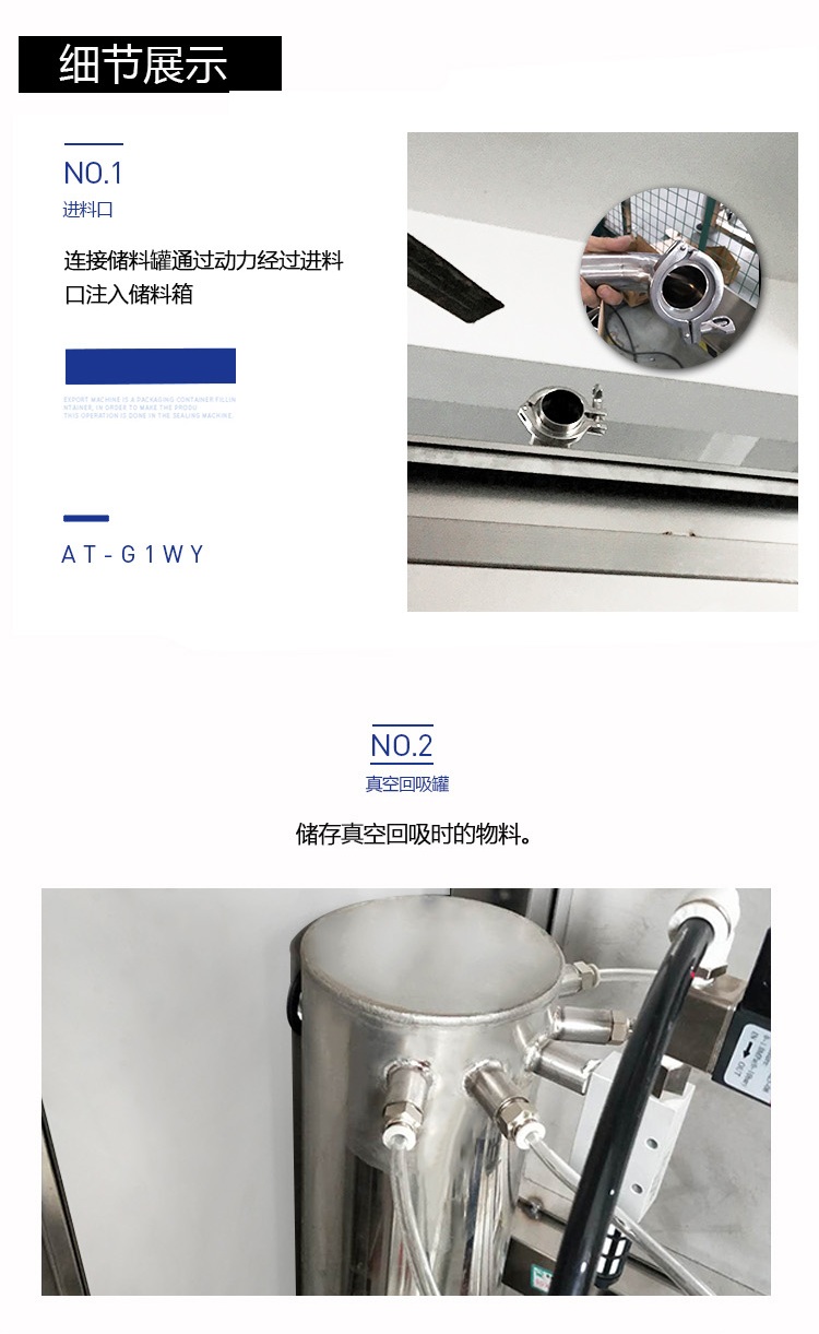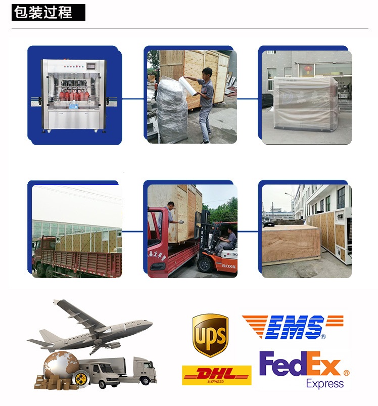 该六头柱塞式全自动润滑油灌装机特的灌装头设计及真空回吸系统,确保灌装过程无残油滴漏,快慢双速灌装,灌装速度可调,杜绝溢瓶现象。该机采用动力灌装,无需配装高位罐,简化了安装工序,提高了灌装效率。履带式压盖机,稳定无噪音,无空压现象。触摸屏界面友好,操作简捷,SIEMENS PLC控制系统,运算速度快,性能稳定,品质卓越。电、气件均采用精品元件,确保整机运作稳定。