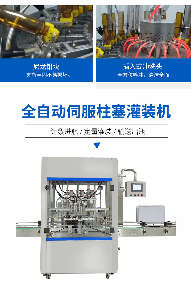 该系列果醋灌装机采用伺服柱塞式计量灌装原理,多项专利认证,适用于各种规格(0.1-1升可兼顾到2升灌装)的液体灌装。