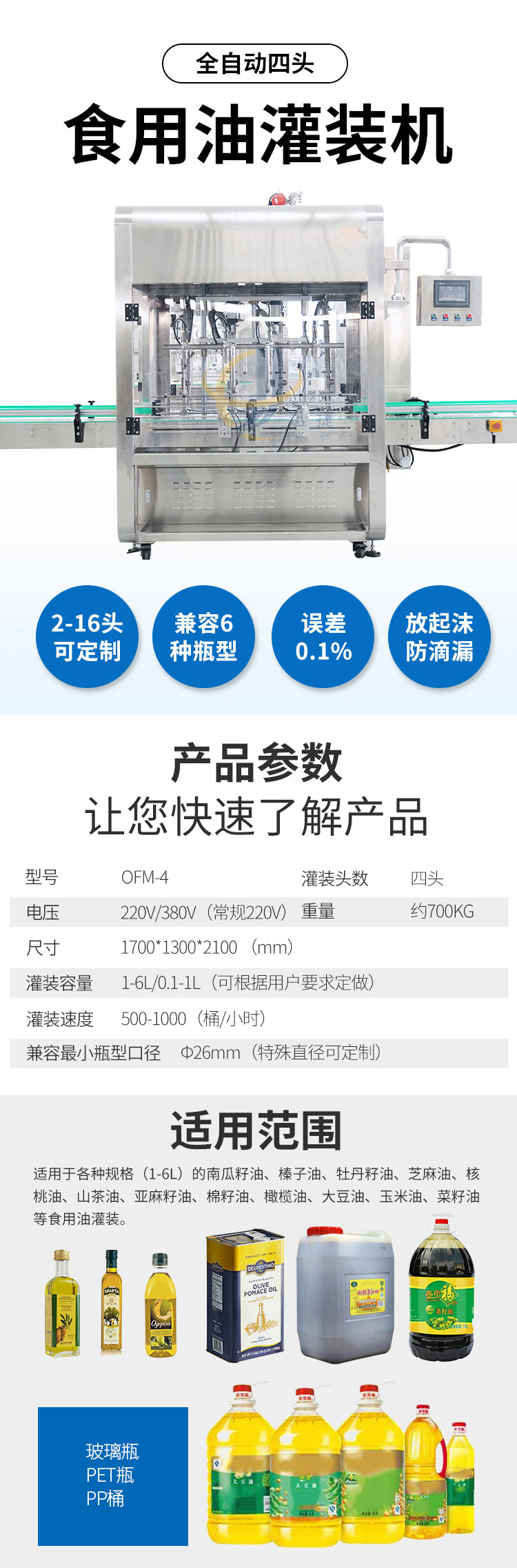 适用于各种规格(1-6L)的南瓜籽油、榛子油、牡丹籽油、芝麻油、核桃油、山茶油、亚麻籽油、棉籽油、橄榄油、大豆油。