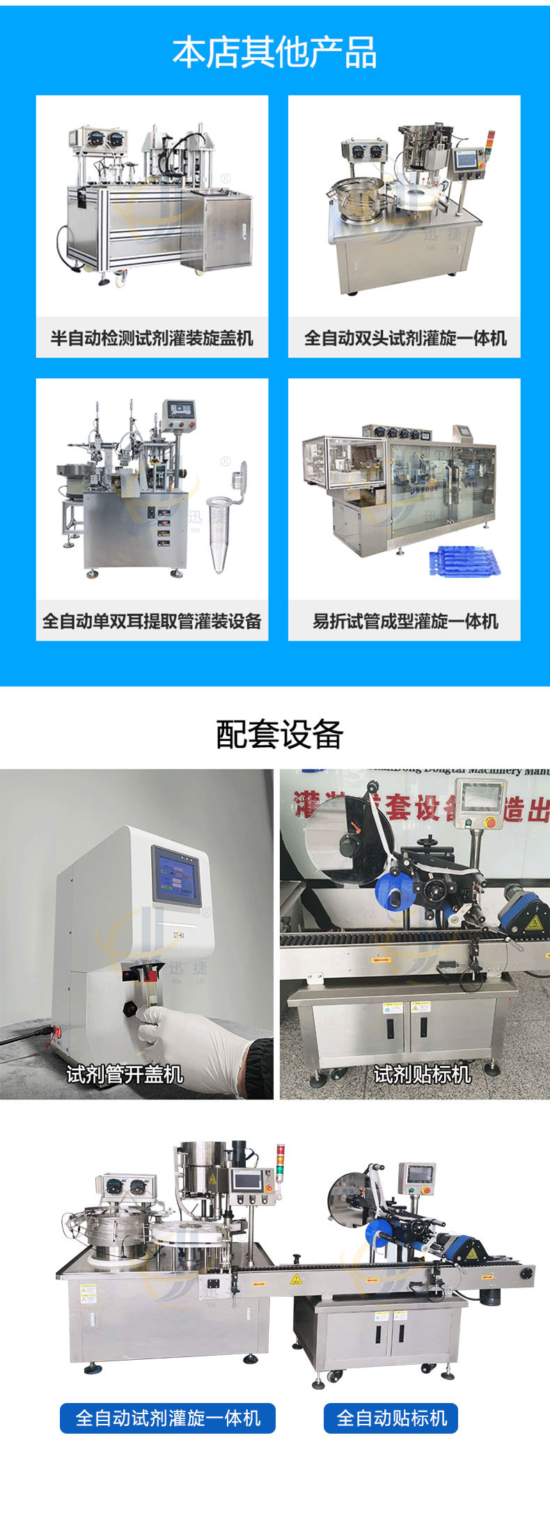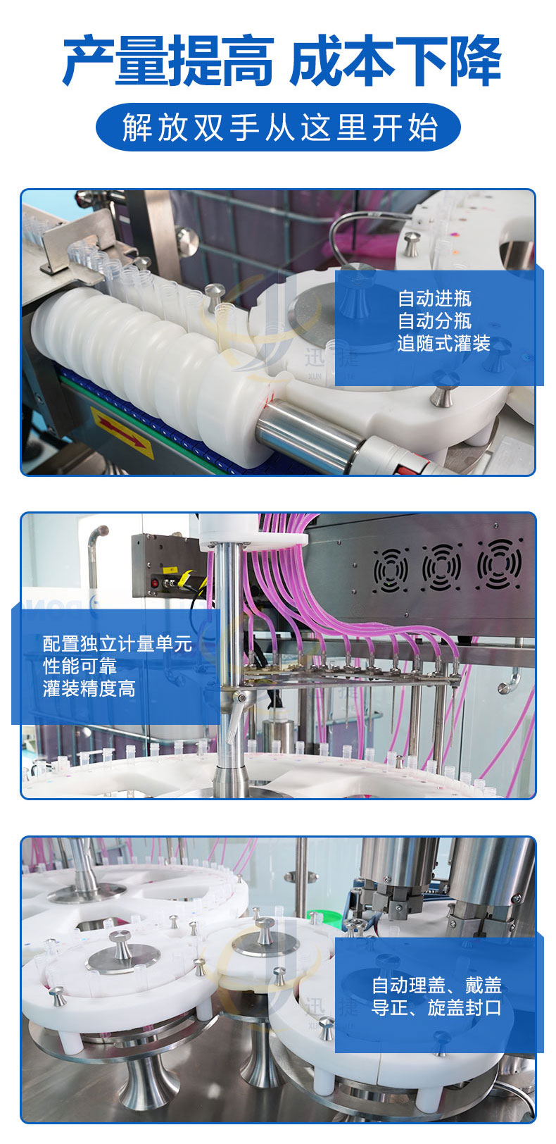 全自动诊断试剂灌装旋盖生产线由理瓶器整理成列,逐个送入进管绞龙,并自动进入等分盘中,等分盘作不同等分的间歇运动。