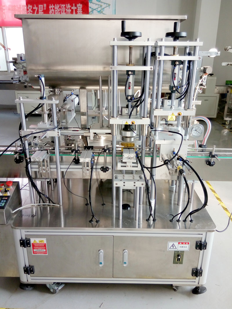 3、采用一体机结构设计,大大降低采购成本,设备具备自动灌装、上盖、自动真空旋盖