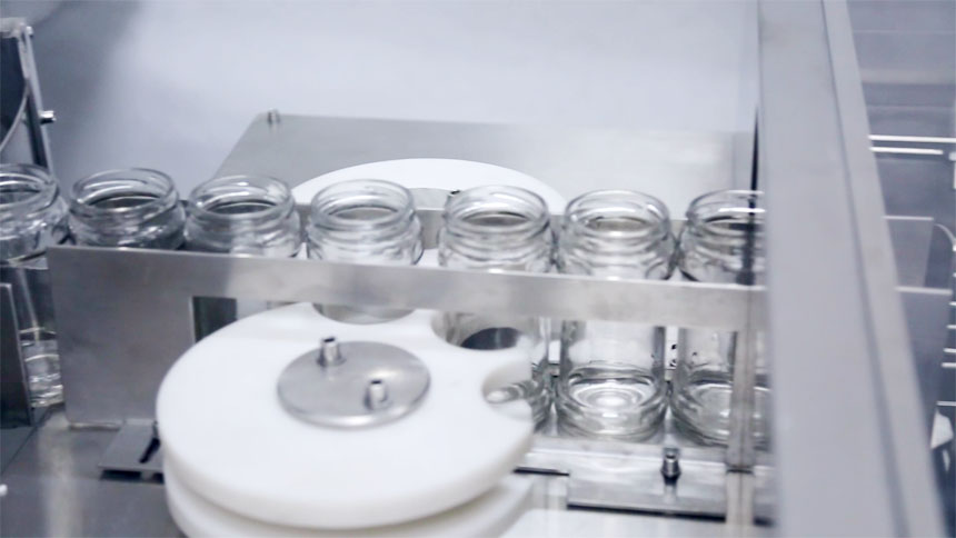 设备介绍:酱类灌装线配套广口玻璃瓶洗瓶机具有性能可靠、操作简单、清洗效果良好、工作效率高等特点,主要由不锈钢水泵、高压喷头、电器箱等组成。它的工作原理是先将需要清洗的瓶子装进瓶盘内,然后人工送入工位,通过循环水喷将需要清洗的瓶子注满水沉至清洗槽先进行简单的粗洗。然后瓶子会上升推进洗瓶机的第二工位,在第二工位会进行三次仔细的清洗,在经过三次气冲、甩干,再自动进入到灭菌烘箱。清洗过程为粗洗一次,仔细清洗三次,然后是烘干。