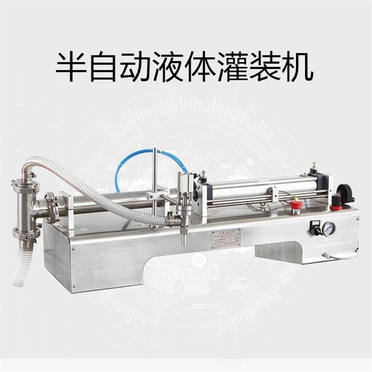 本公司生产的半自动活塞式单头液体灌装机是在本公司生产的灌装机系列的基础上,引进灌装技术,进行了进一步的改造和创新,其结构更加简单合理,精确度高,操作更加简便,是贵公司填充设备的选择。本产品只使用于灌装液体等低浓度物品,不可用于其它途径。为确保安全生产,请仔细阅读一下注意事项:
