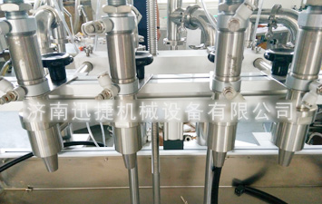 3、各个灌装头可在一定范围内任意调节间距和高度,可使用各种大小形状的容器的灌装。